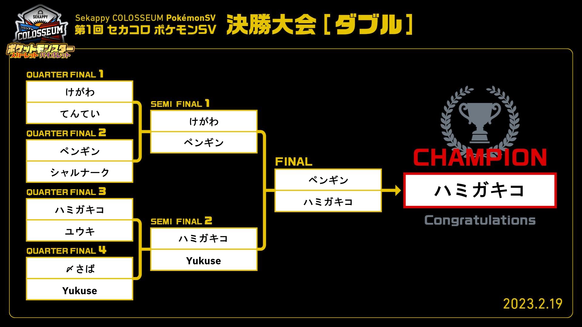 | 大会名称 | 第1回 Sekappy COLOSSEUM ポケモンSV ダブル 決勝大会 |